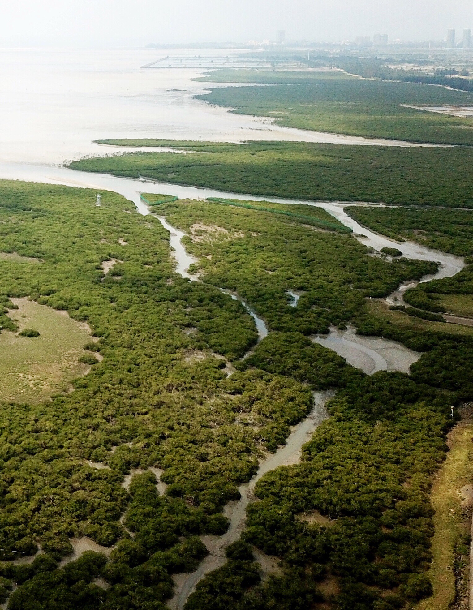 这是2018年10月26日无人机在广西北海金海湾红树林生态保护区拍摄的红树林。