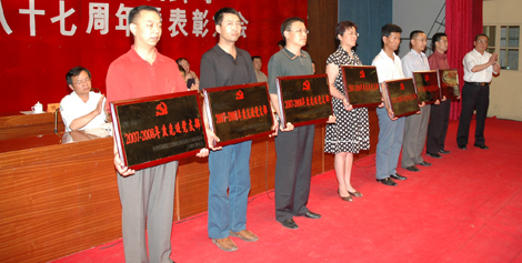 本站消息:2008年7月1日,公司召开庆祝建党八十七周年暨总结表彰大会,隆重表彰了公司2007—2008年度表现突出的202车间党支部等7个先进党支部和盛世龙等49名优秀共产党员。 公司领导杨文浩、李发金、赵四军、师海长、任立华、唐占卿等出席会议,公司党委副书记、纪委书记、副总经理师海长主持会议。