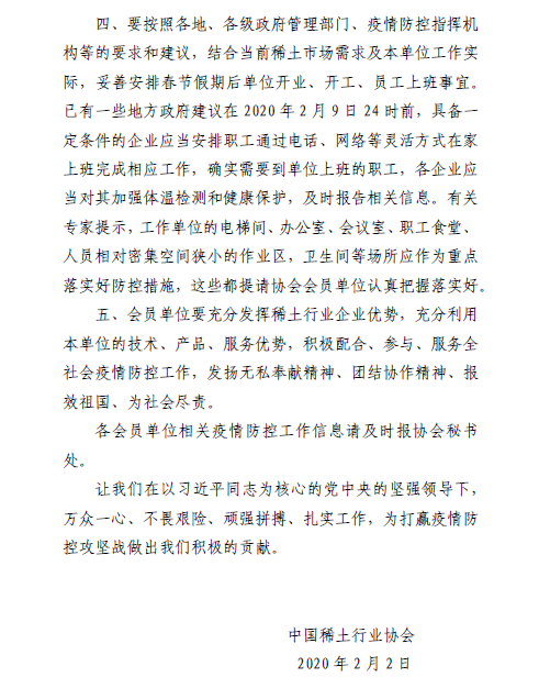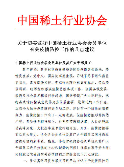 关于切实做好中国稀土行业协会会员单位有关疫情防控工作的几点建议