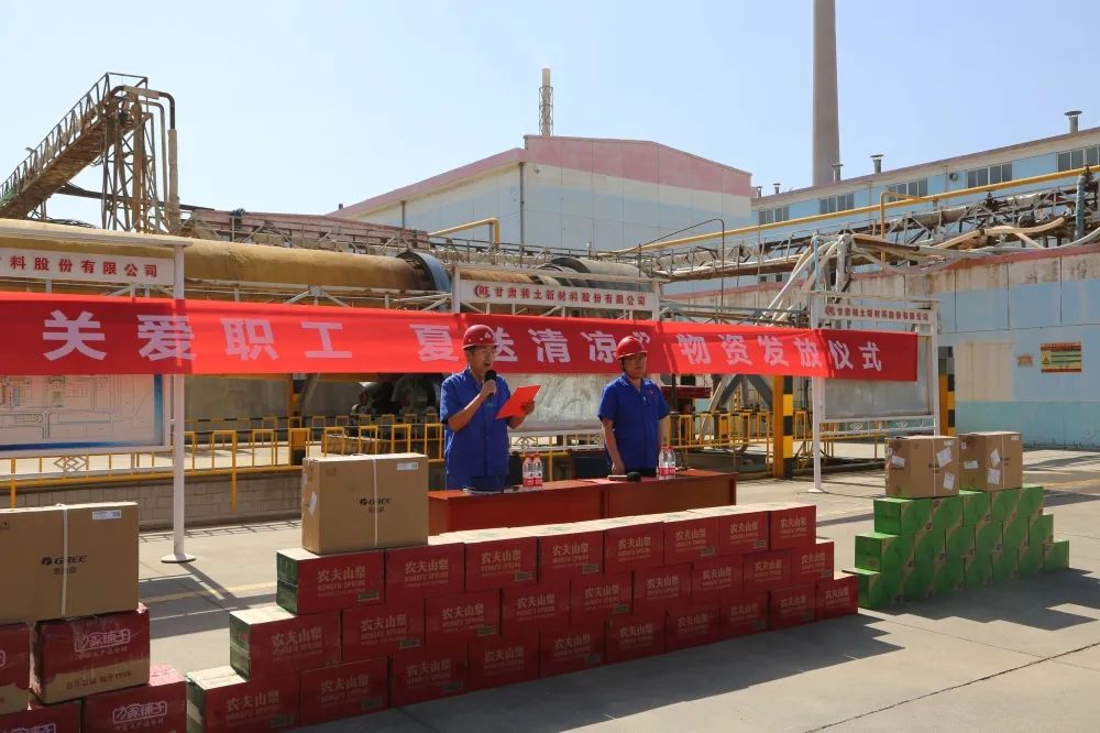 炎炎夏日送清凉,丝丝情谊沁人心。入夏以来,高温持续、酷暑难当,连续考验着奋战在一线的岗位职工们,也牵动着北方稀土党委的心。为进一步做好高温期间职工劳动保护和防暑降温工作,切实维护广大职工安全健康合法权益,北方稀土党委特地向公司赠予一批防暑降温饮品及物资,为公司广大一线职工送来了上级党委的关怀与问候。