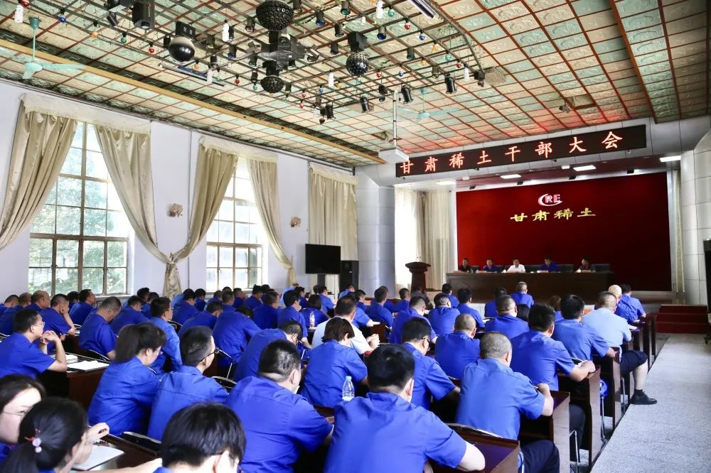7月8日下午,公司在文化宫会议室召开干部大会,宣布公司领导班子成员调整的任免决定。北方稀土董事、党委副书记、工会主席白华裔,新任职干部、公司班子成员、中层干部、部分党员代表、职工代表参加会议。会议由北方稀土党委工作部副部长张翔宇主持。