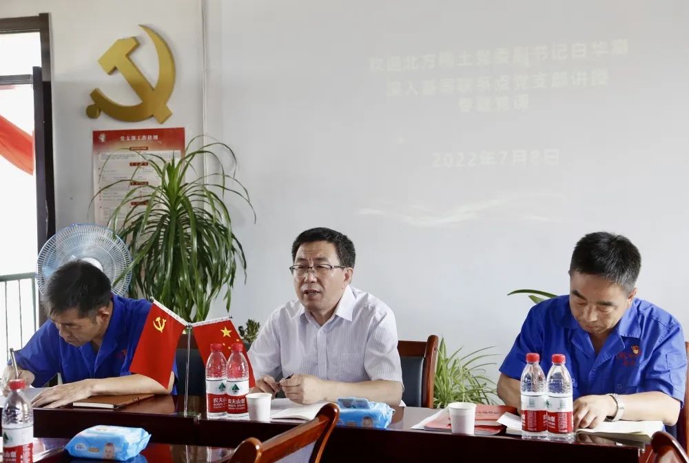 7月8日下午,北方稀土董事、党委副书记、工会主席白华裔来到公司204车间党支部调研,并为基层联系点全体党员干部讲授专题党课。公司党委书记、董事长刘培勋,党委副书记、纪委书记常忠亮陪同调研并参加学习。
