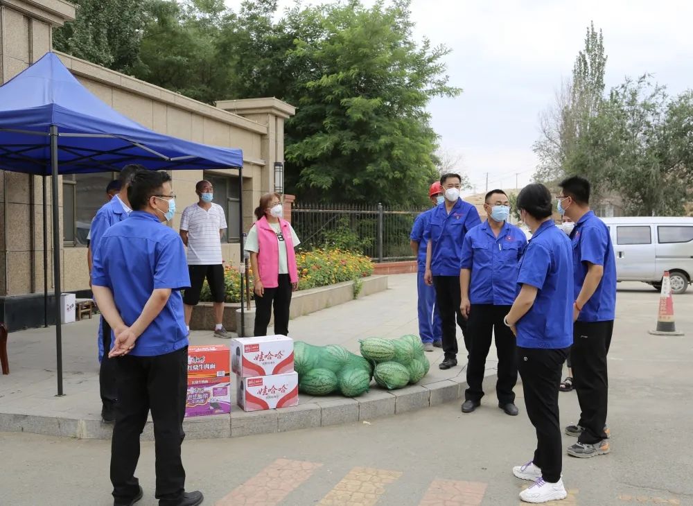 8月3日,公司党委副书记、纪委书记、新冠肺炎疫情联防联控工作领导小组副组长常忠亮,党委委员、工会主席韩俊国带领新冠肺炎疫情联防联控工作领导小组成员先后来到生活区稀土家园门岗、公司厂区门岗,亲切看望慰问防疫一线工作人员,为他们送去矿泉水、方便面、西瓜等慰问品,叮嘱他们全力配合社区做好疫情防控工作。