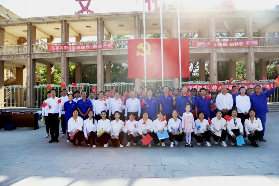 为庆祝中国共产党成立101周年,喜迎党的二十大胜利召开,唱响新时代爱国奋斗主旋律,汇聚建功立业正能量,9月7日上午,机关第一党支部、第二党支部、204车间党支部、武装保卫部党支部在文化宫广场联合举办“传承奋斗精神 永葆革命本色 争做时代新人”主题党日活动。公司领导周晓君、常忠亮、李虎平、韩俊国、张宏祥及各支部党员代表、团员青年骨干共百余人参加了活动。