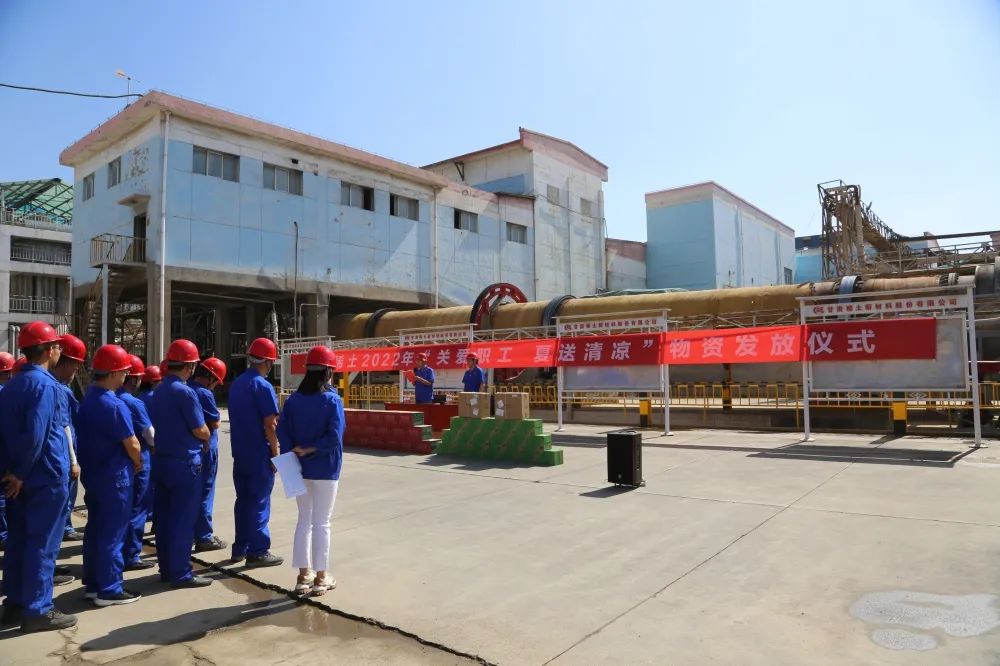 炎炎夏日送清凉,丝丝情谊沁人心。入夏以来,高温持续、酷暑难当,连续考验着奋战在一线的岗位职工们,也牵动着北方稀土党委的心。为进一步做好高温期间职工劳动保护和防暑降温工作,切实维护广大职工安全健康合法权益,北方稀土党委特地向公司赠予一批防暑降温饮品及物资,为公司广大一线职工送来了上级党委的关怀与问候。