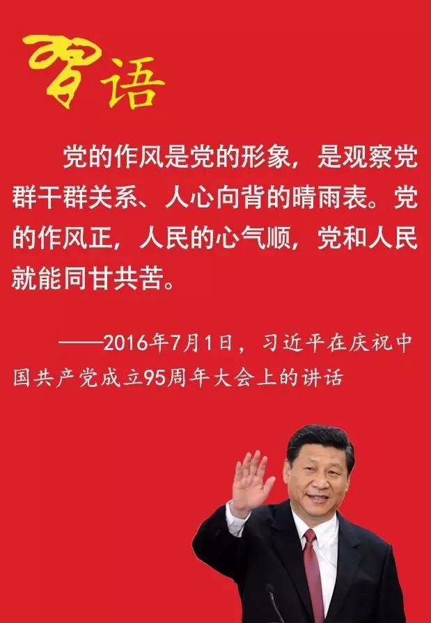 党的作风是党的形象,是观察党群干群关系、人心向背的晴雨表。党的作风正,人民的心气顺,党和人民就能同甘共苦。